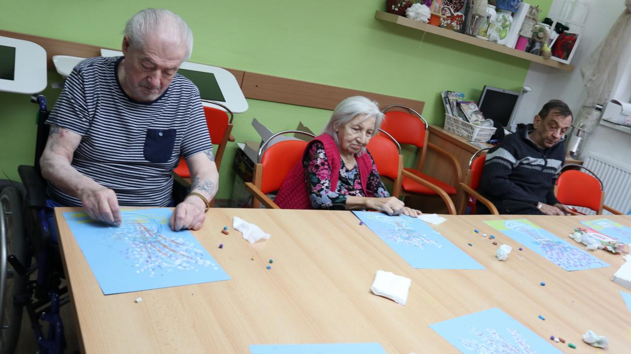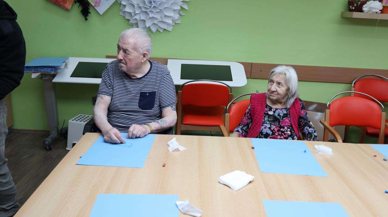 Dne 20. 2. nás po prvé v roce přijel navštívit pan Pavel Lakomý, který s námi namaloval dva krásné obrázky. Jelikož se blíží jaro, tak jsme si nakresli vázu plnou šeříku a siluety koček v západu slunce.