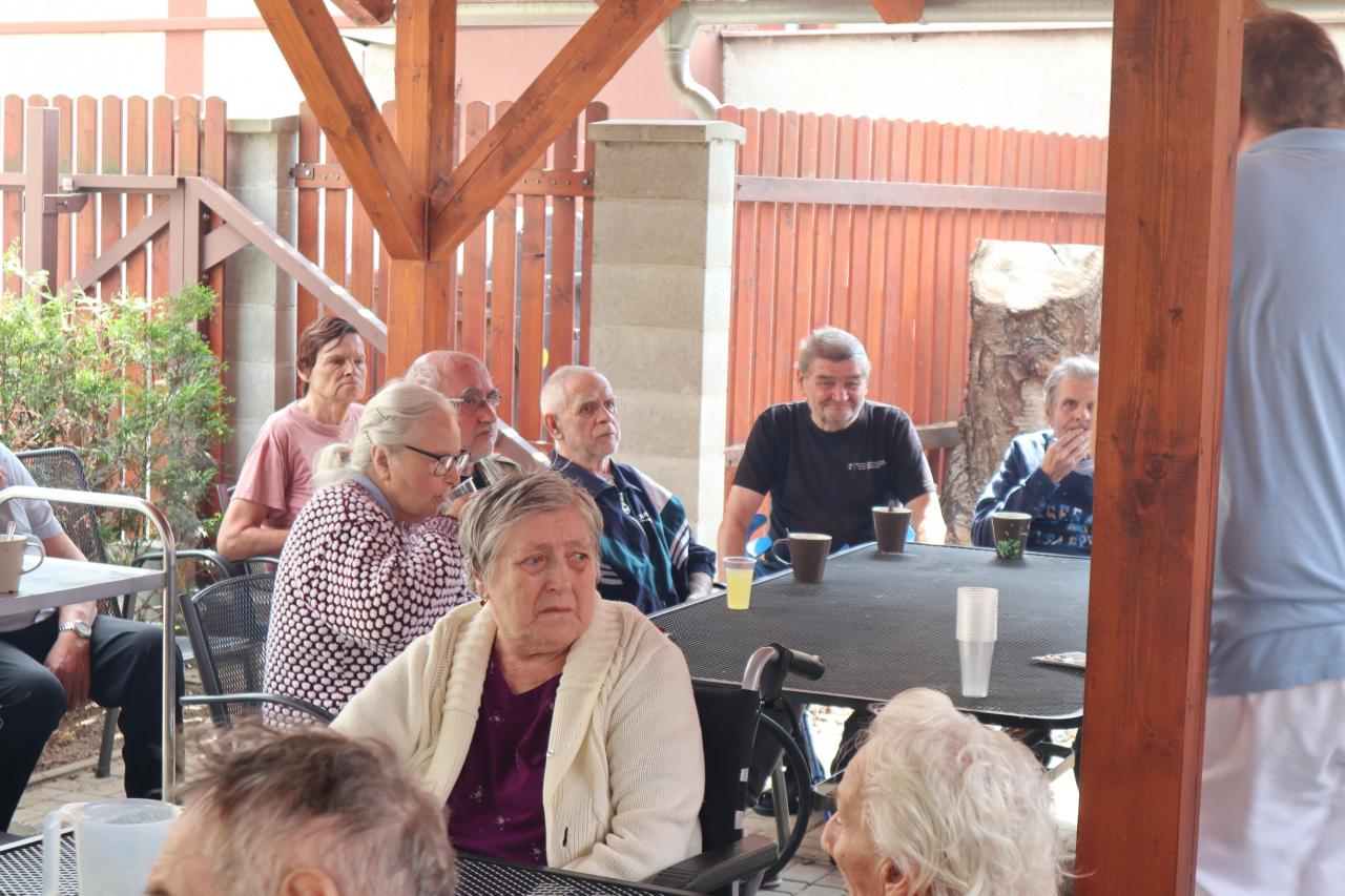 Letos poprvé jsme si v domově opekli špekáčky na grilu a zapili nealkoholickým pivem. Všichni jsme si pochutnali a strávili společný čas venku pod pergolou.